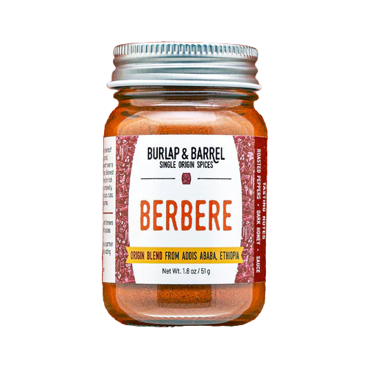 Bring the bold, iconic flavors of Ethiopia into your kitchen with Burlap & Barrel’s Single Origin Berbere. This rich chili and herb blend is handcrafted in Addis Ababa, Ethiopia, from fermented and dried berbere chilies combined with over a dozen indigenous spices and herbs.